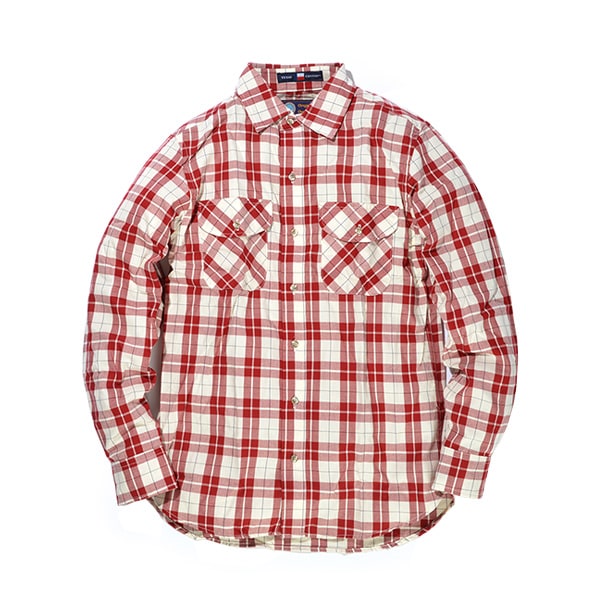 チェック柄テキサスコットン長袖シャツ (レッド)