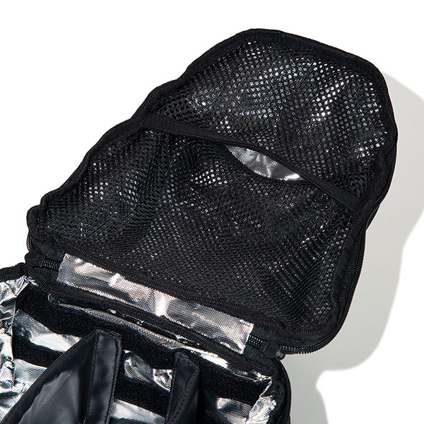 - ペッパーやオリーブオイルなど、アウトドアに欠かせない調味料の収納ボックスです。カスタイマイズが可能な仕切りと、蓋裏のネットはボトルを縦入れしても倒れにくい仕様となっています。