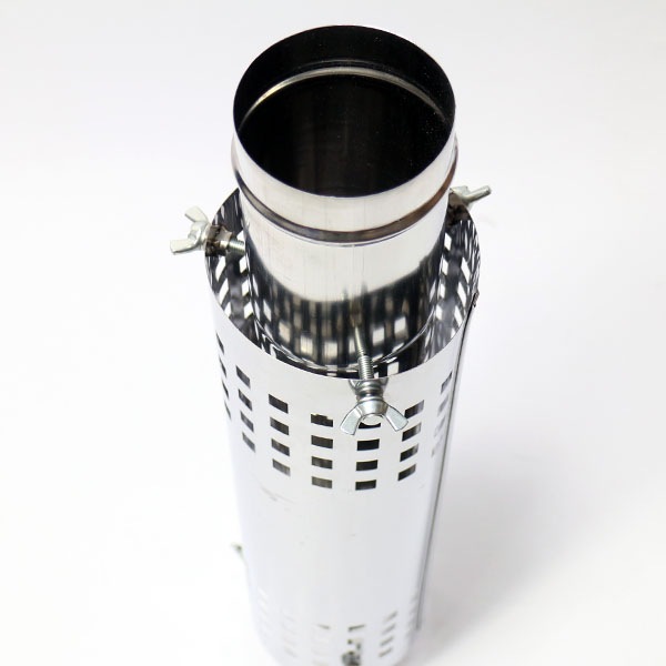 - パイプに取り付け可能なプロテクターです。パイプに装着することで二重構造となり、高温になるパイプの遮熱・放熱に有効なアイテムです。また、テントやタープとの境界、手が触れやすい下部に取り付けし、ストーブ周囲の安全性を高めます。ボルトで簡単に脱着可能です。パイプの組み合わせにかかわらず、φ80・φ75両方に対応出来るので、自由な位置に固定でき使い勝手にも優れています。テントスキンプロテクターとの併用もおすすめです。こちらは、ステンレス加工で有名な新潟・燕市の工場へ別注した、日本生産のアイテムです。