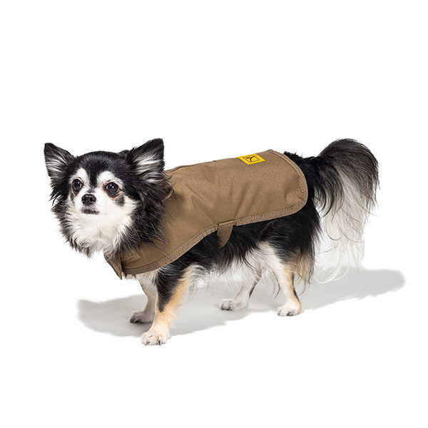 - 愛犬を格好良くドレスアップする、ドギージャケットです。3~5kg程度の超小型犬向け。オレゴニアンのギアやバッグにも使われている、タフな生地を使用しています。カラー付きで、裏面キルト仕様。ハーネス型リードも使用できる、背面ジッパー付きです。