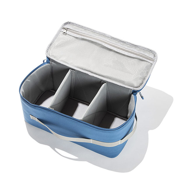 キャンプはもちろん、トラベルシーンでも活躍する、ラージサイズのセミハードギアバッグです。ノーススターなどのランタンをしっかり守る、優れたクッション性を備えています。内部にはポケットと、ベルクロで自由に組み合わせを変えられる仕切り付き。さらに、蓋の裏側にはハードメッシュ仕様のポケットを採用し、機能性と収納力を兼ね備えています。
