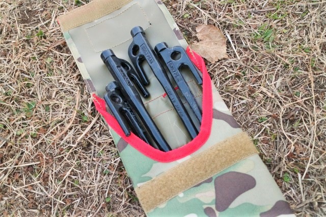 - ペグを収納・持ち運ぶために設計されたマルチカモ柄のペグキャリー(ケース)です。裏面にペグハンマーを収納する事ができます。ケース口のフラップは面ファスナー式です。