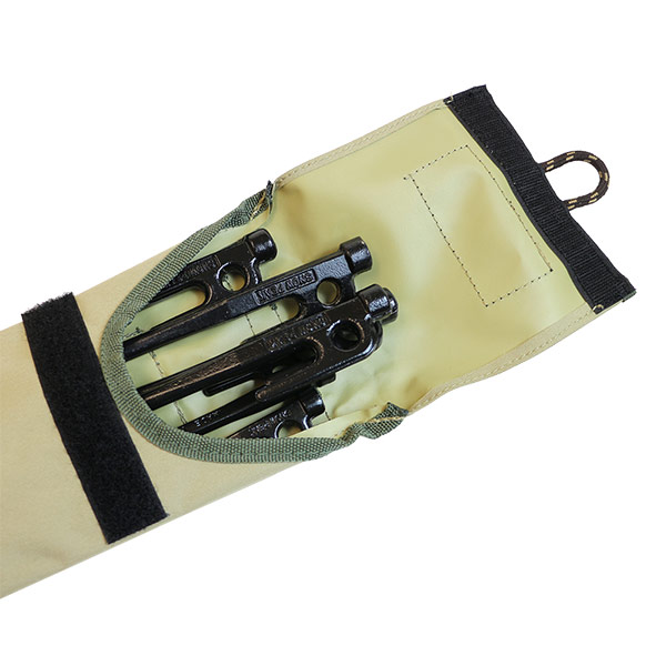 - ペグを収納・持ち運ぶために設計されたペグキャリー(ケース)です。裏面にペグハンマーを収納する事ができます。ケース口のフラップはマジックテープ式。こちらの商品は「ペグキャリー30」と「ペグキャリー40」の2サイズ展開です(画像5枚目を参照)。
