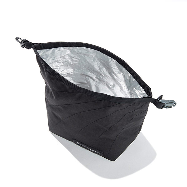 メスティン(約17×9.5×6.5cm)を保温できる、ウォームキーパーです。2個まで収納可能なサイズです。メスティンでの調理時に、蒸らす作業にとても便利です。内部はフォーム入りのアルミフィルム仕様で、保冷剤を入れるとソフトクーラー替わりにもなり、汚れも簡単に拭き取れます。350ml缶が4本入るサイズで、普段のお弁当やドリンクにもぴったりのバッグです。