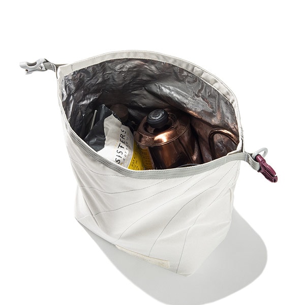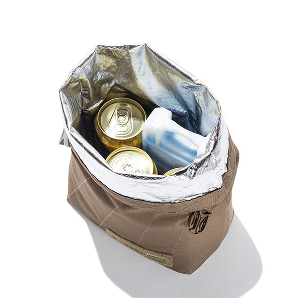 メスティンラージを2つ、保温できるウォームキーパーです。メスティ1つでもOK(画像2枚目)。メスティンでの調理時に、蒸らす作業にとても便利です。内部はフォーム入りのアルミフィルム仕様で、保冷剤を入れるとソフトクーラー替わりにもなり、汚れも簡単に拭き取れます。350ml缶が6本入るサイズで、普段のお弁当やドリンクにもぴったりのバッグです。